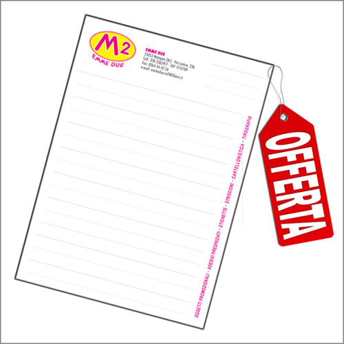 Questo mese Emme 2 propone prezzi vantaggiosi sugli articoli tipografici elencati di seguito. Non esitare a contattarci e richiedere un preventivo.